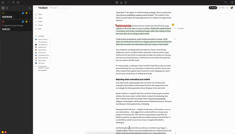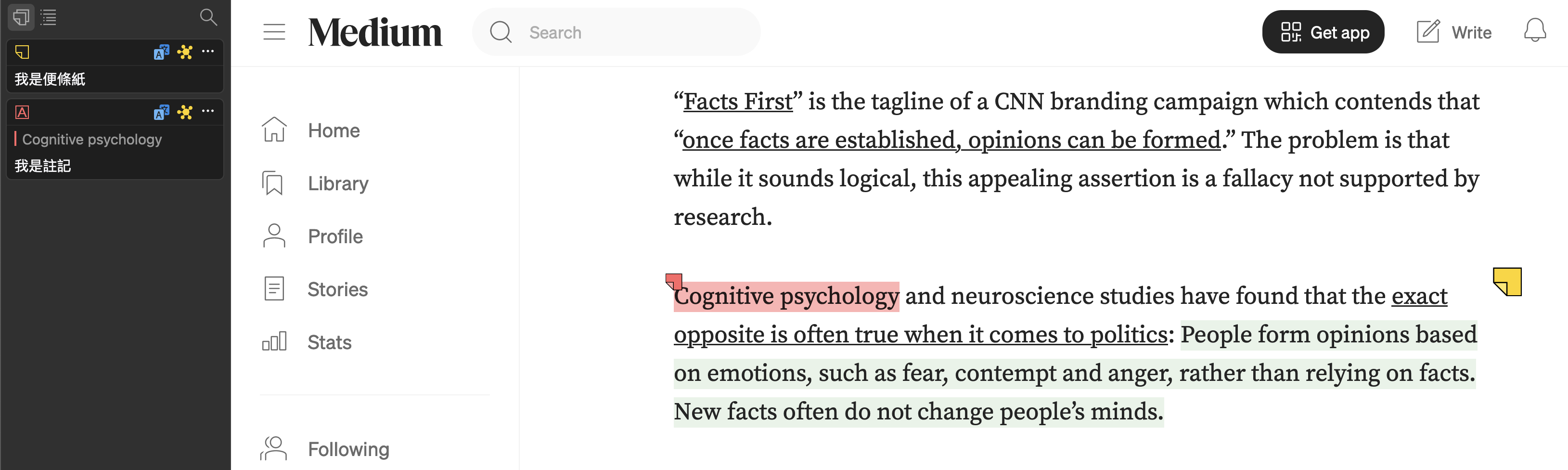 文章以網頁快照的方式存下後,同樣可以直接在上面註記