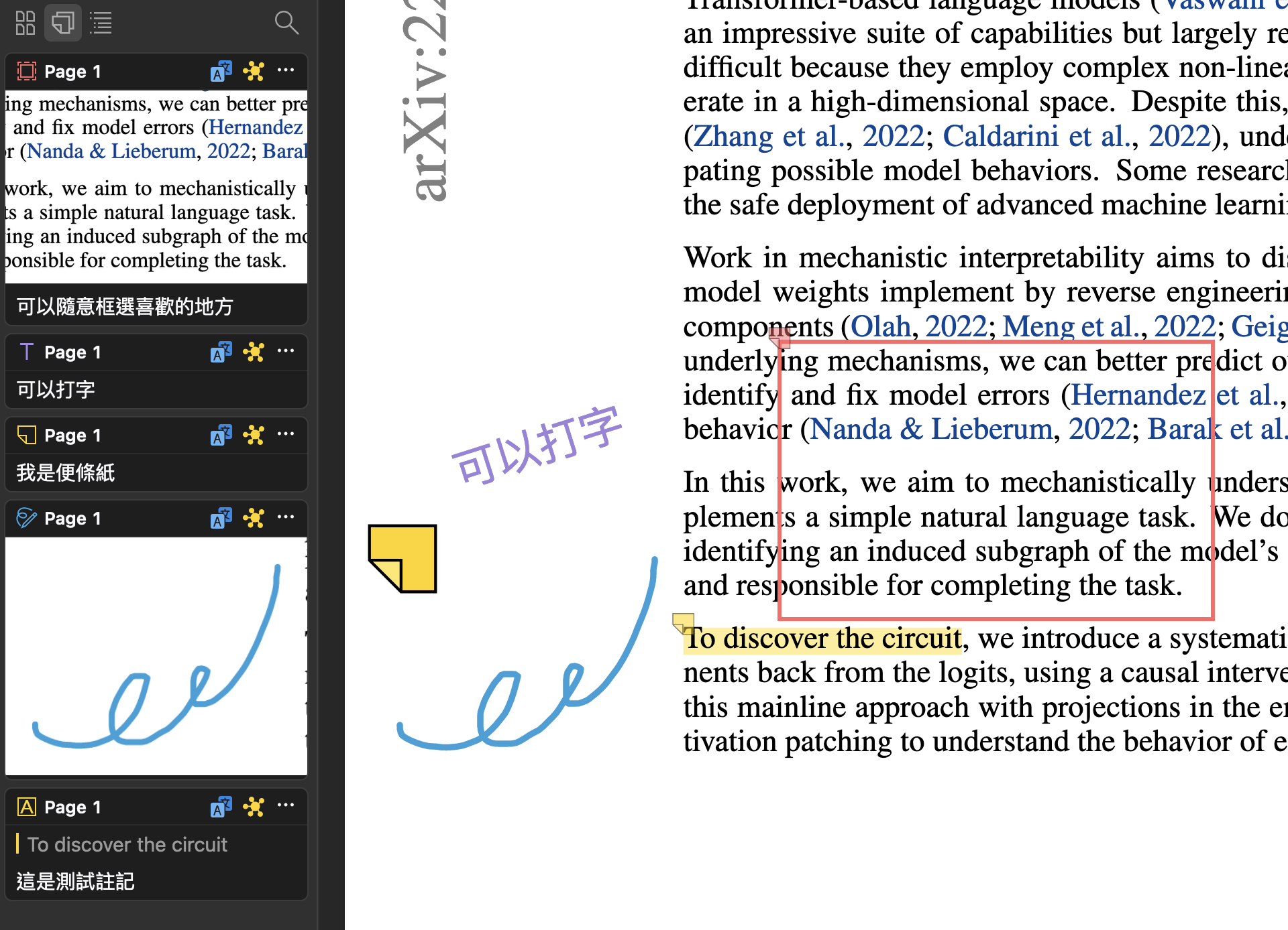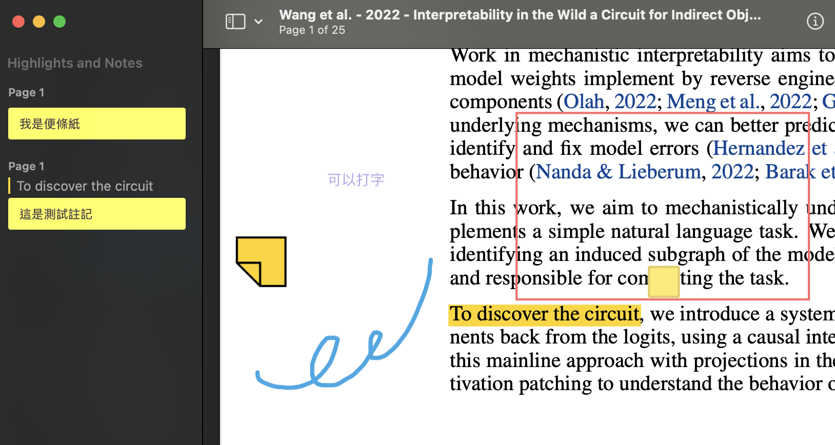 在 Zotero 中連點兩次該文獻會開啟閱讀板面。 此時可以在文獻上做筆記、註記,若有手寫筆也可以手寫!