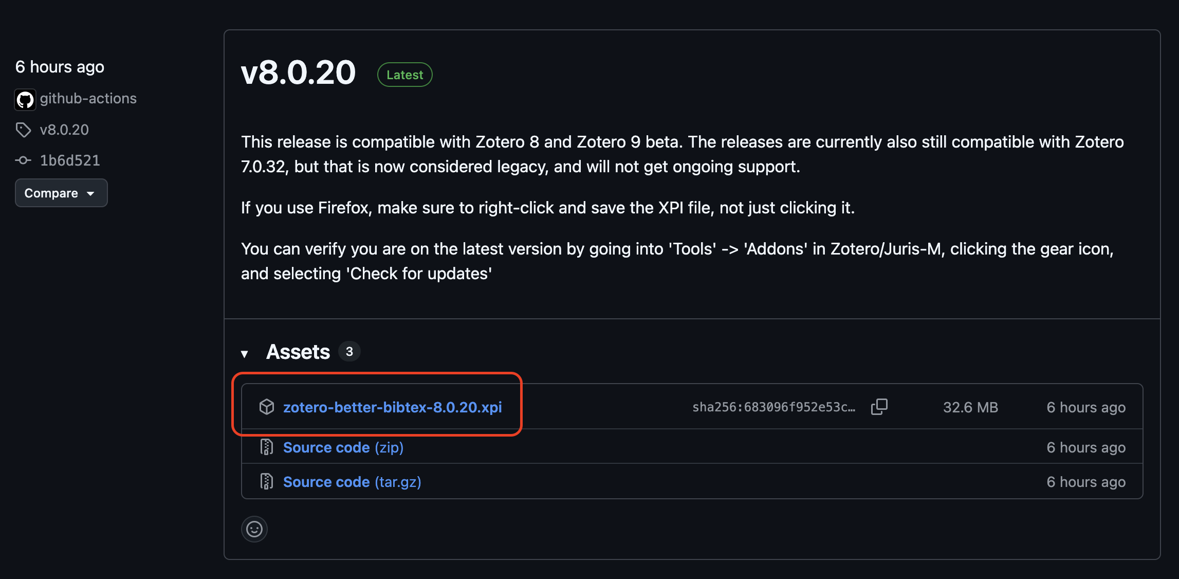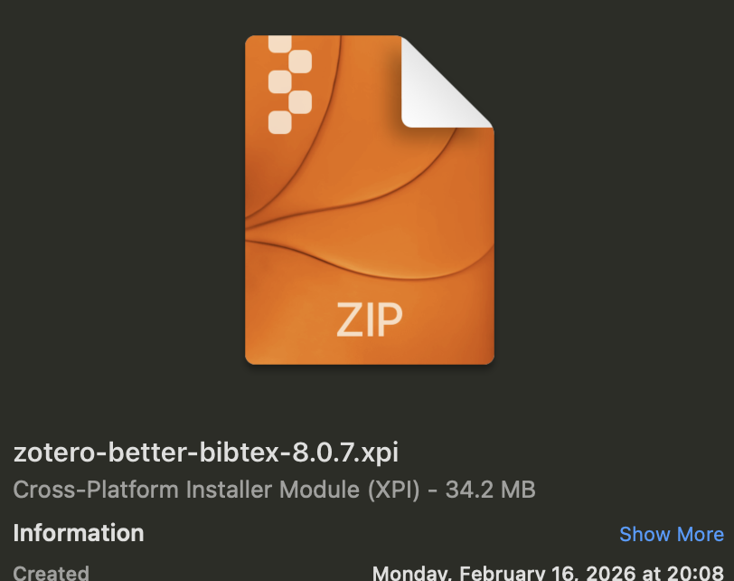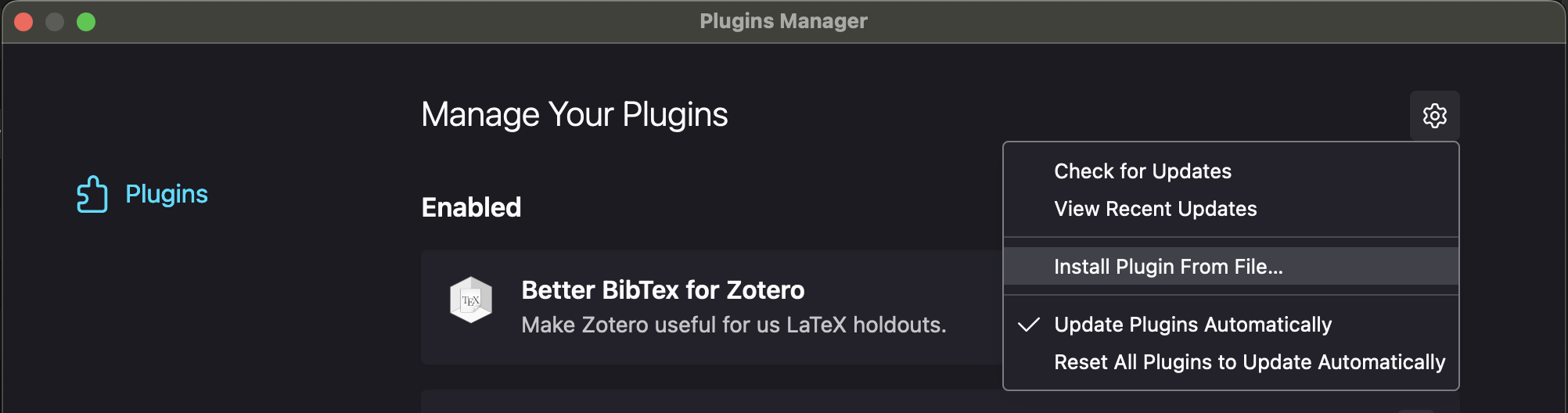 以下以 Better BibTeX 插件為例,示範如何安裝插件。